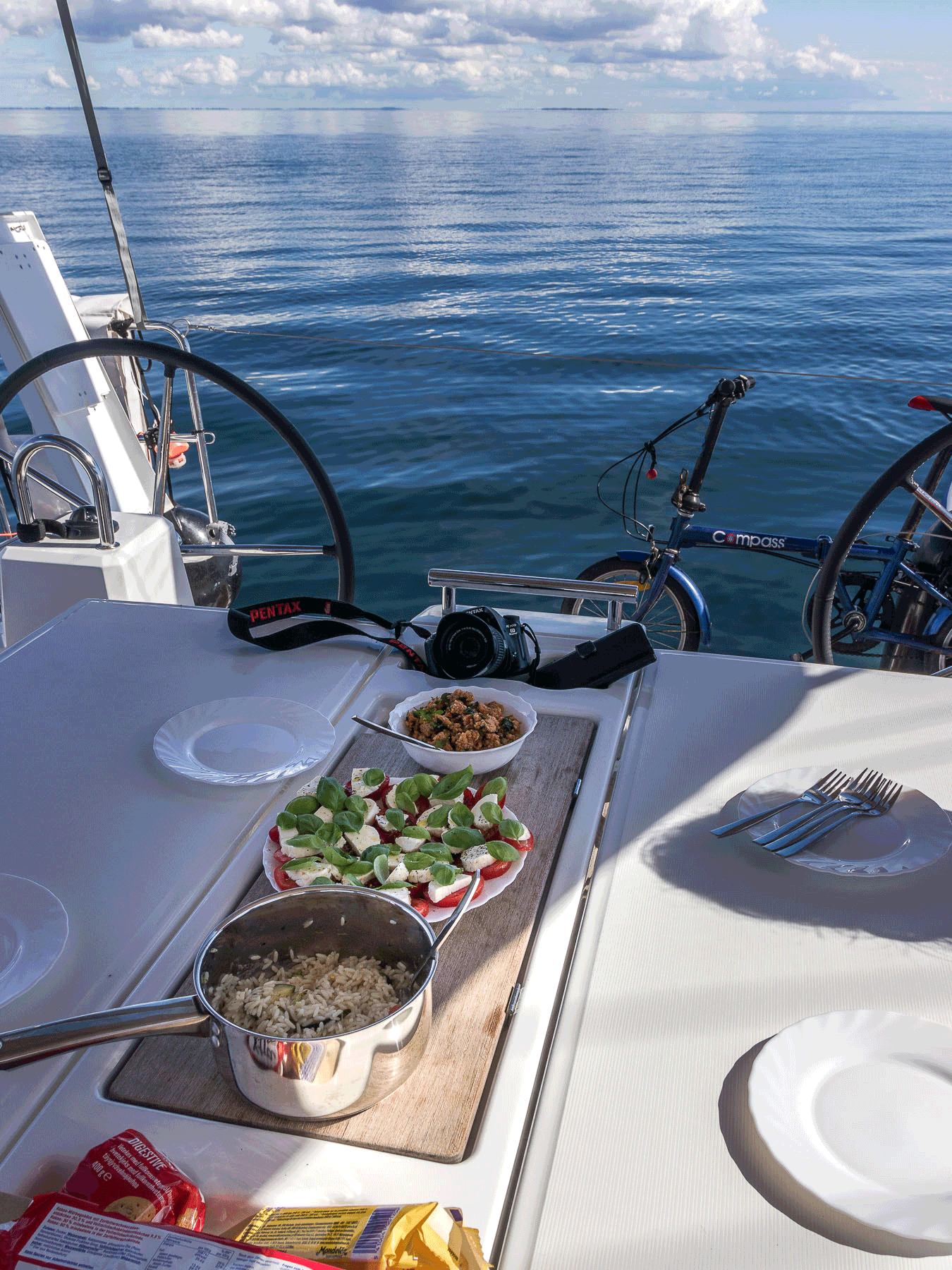 Am Abend wurden alle vorhandenen Vorräte von unseren Schiffen zusammengebracht und wir konnten uns gemütlich an unserem letzten Abend in der Marina zum Abschluss zusammensetzen und die Erlebnisse austauschen.